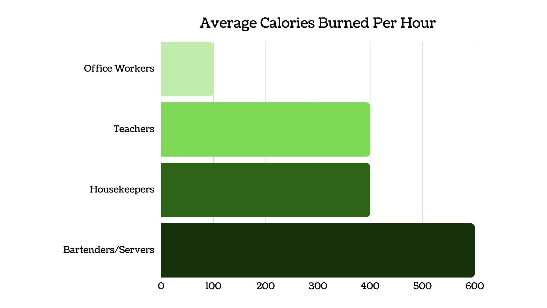 This is calories per hour worked by the way, which is why I said being a bartender might make you want to quit the gym. Bartending isn’t always a standard 8 hour shift. There are rare occasions when a bar shift is shorter, but I would argue that most bartenders see more than 8 hours in one shift, and that’s not counting working a double at places that are open for multiple meal times.